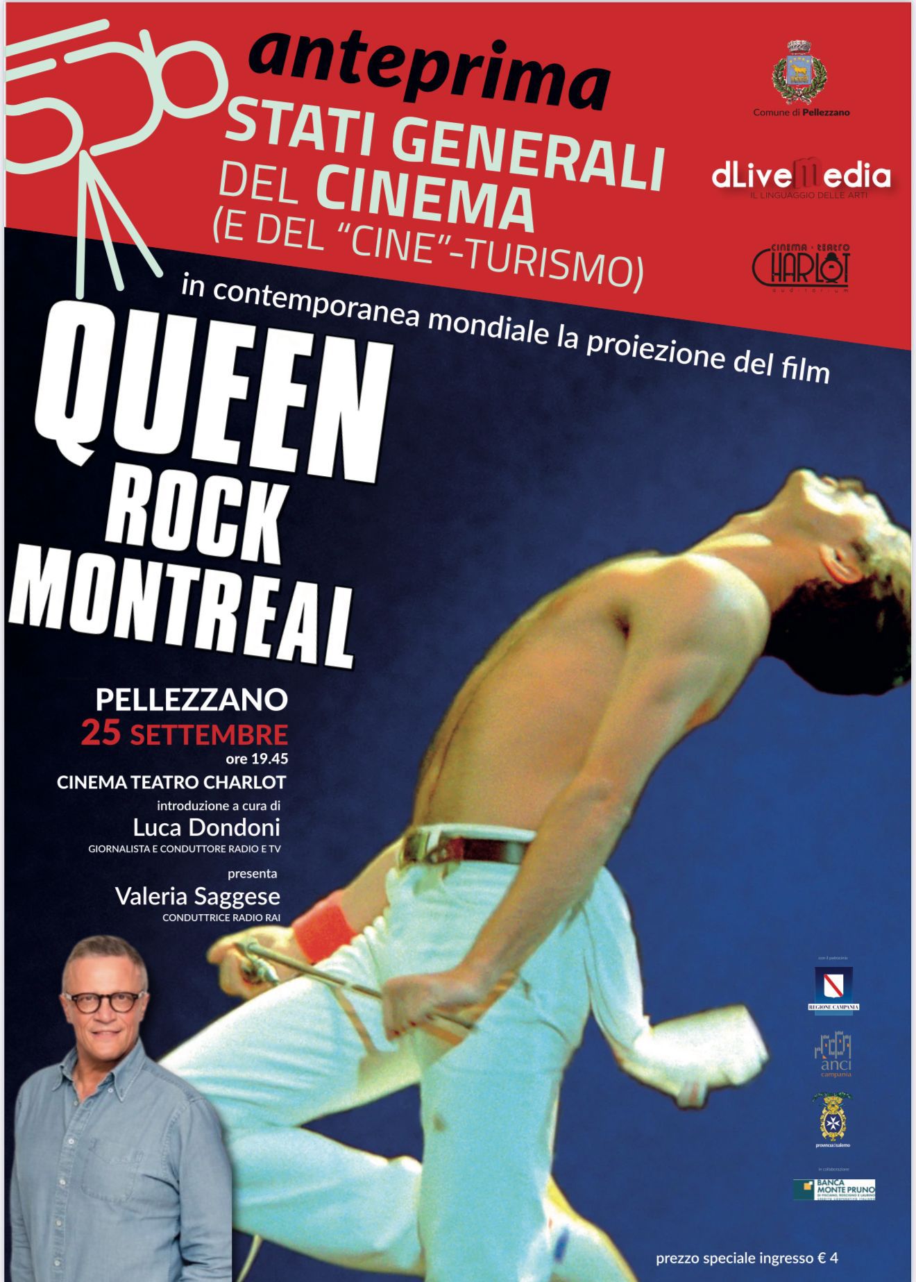 📆 Si partirà con un'anteprima, 𝐠𝐢𝐨𝐯𝐞𝐝𝐢̀ 𝟐𝟓 𝐬𝐞𝐭𝐭𝐞𝐦𝐛𝐫𝐞 alle ore 19:45, al 𝐂𝐢𝐧𝐞𝐦𝐚 𝐓𝐞𝐚𝐭𝐫𝐨 𝐂𝐡𝐚𝐫𝐥𝐨𝐭 di Capezzano, dove verrà proiettato, in contemporanea mondiale, il film dal titolo "𝑄𝑢𝑒𝑒𝑛 𝑅𝑜𝑐𝑘 𝑀𝑜𝑛𝑡𝑟𝑒𝑎𝑙", con l'introduzione a cura del giornalista e conduttore radiotelevisivo 𝐋𝐮𝐜𝐚 𝐃𝐨𝐧𝐝𝐨𝐧𝐢 e la presentazione della conduttrice Radio Rai 𝐕𝐚𝐥𝐞𝐫𝐢𝐚 𝐒𝐚𝐠𝐠𝐞𝐬𝐞.