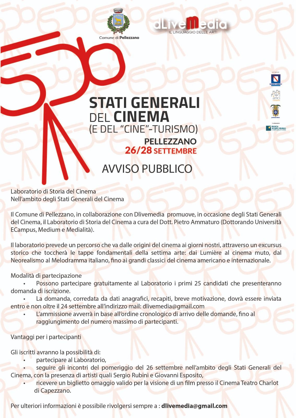 In occasione degli Stati Generali del Cinema, il Comune di Pellezzano, in collaborazione con 𝐃𝐥𝐢𝐯𝐞𝐦𝐞𝐝𝐢𝐚, promuove il 𝐋𝐚𝐛𝐨𝐫𝐚𝐭𝐨𝐫𝐢𝐨 𝐝𝐢 𝐒𝐭𝐨𝐫𝐢𝐚 𝐝𝐞𝐥 𝐂𝐢𝐧𝐞𝐦𝐚 a cura del dott. Pietro Ammaturo, un percorso che ripercorre le origini della settima arte fino ai grandi classici internazionali, passando dal cinema muto al Neorealismo e al Melodramma italiano.